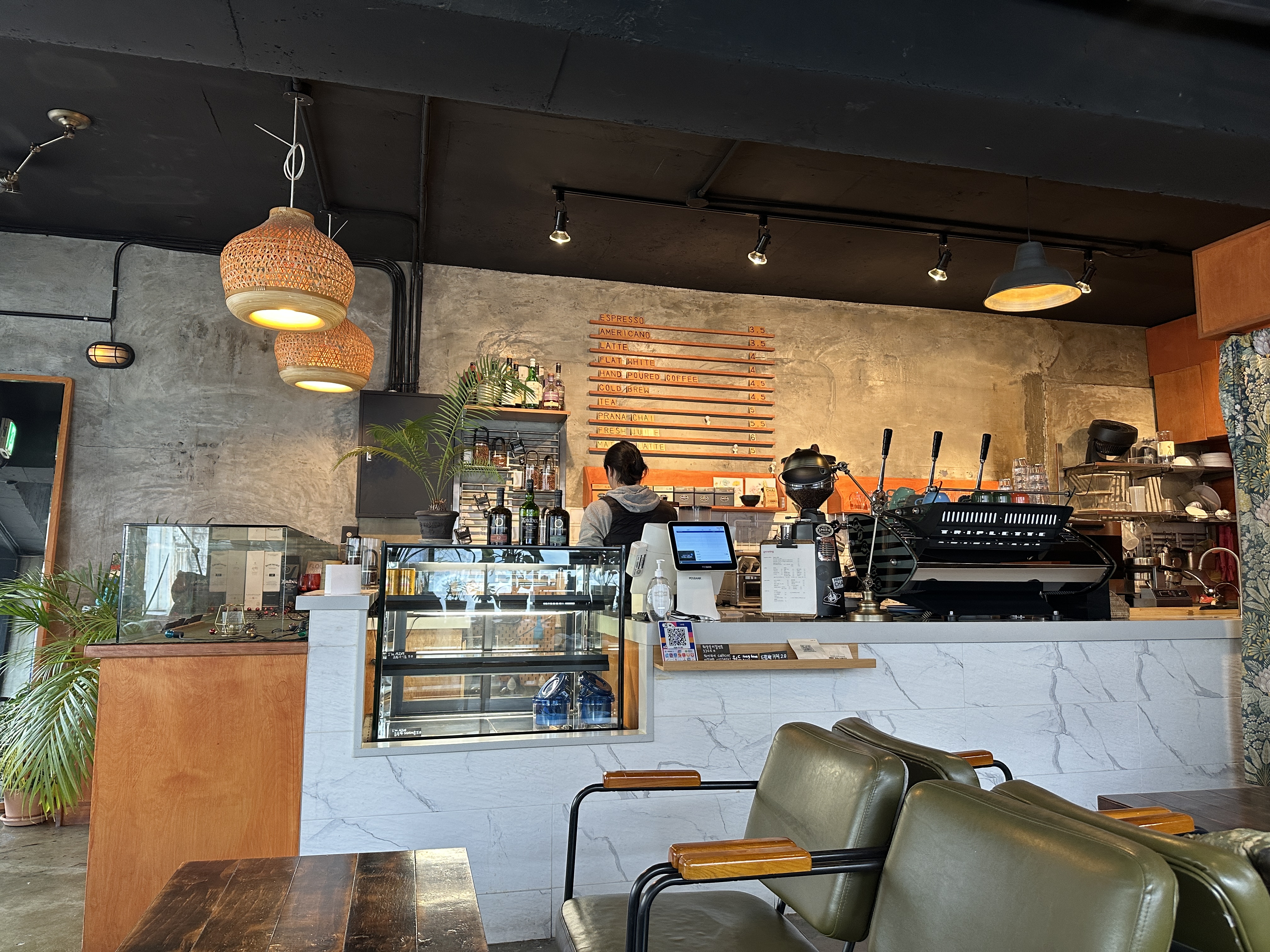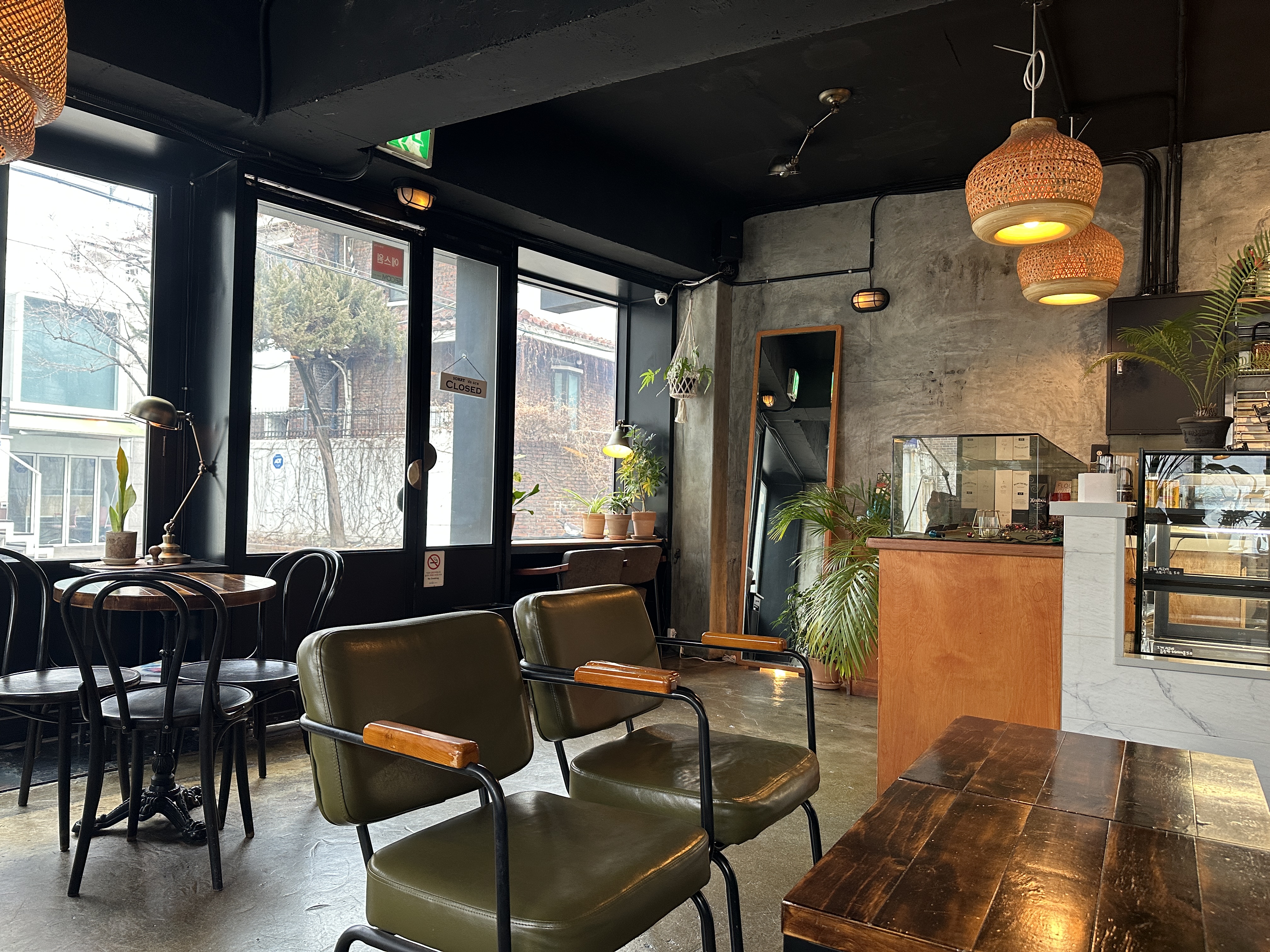 - 인테리어 특징: '심플함 속에 깃든 디테일'이 특징입니다. 과한 장식보다는 미니멀한 가구 배치와 감각적인 조명을 사용해 커피에 온전히 집중할 수 있는 환경을 만들었습니다. 매장 곳곳에 놓인 초록색 식물들이 포인트가 되어 생동감을 줍니다.