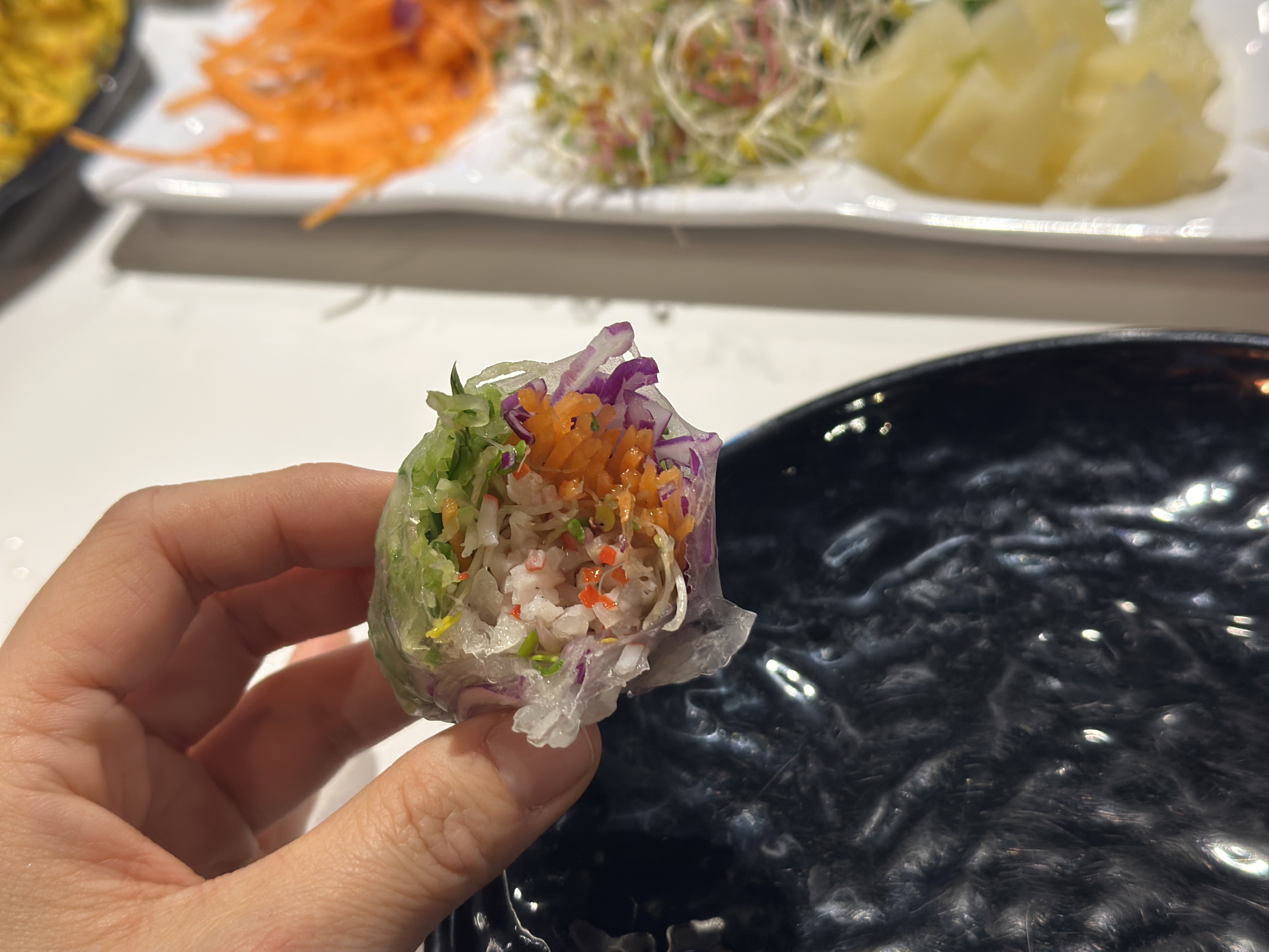 날씨가 너무 추운 날! 뜨끈한 국물이 생각나 방문. 근처 라멘집과 설렁탕 맛집이 있었지만 데리고 가주신 선생님께서 내 입맛에 꼭 맞을 것 같다고 추천해주셔서 갔다. 결과는? 대만족. 다음에 또 언제갈까 고민 중. 평소 양이 많지 않은 편이라 무한리필은 가성비가 좀 떨어지는 편인데 여기만큼은 진짜 잘 먹고 나왔다 싶을 정도로 많이 먹은 날. 월남쌈에 넣어먹는 야채가 작게 잘려져 있고 싱싱하다.(특히 당근과 오이. 당근 헤이터인데 너무 맛있게 먹고 왔다는 후기...) 그리고 샤브에 넣어먹는 메뉴가 많은 편이었는데 떡(고구마 떡도 있다), 어묵, 소면, 버섯과 유부 등 취향껏 골라 먹을 수 있다. 이 날 데이트하는 커플, 식구가 많은 가족 모임, 아이를 동반한 가족 등 다양한 구성을 볼 수 있었다. 식사 후 카페 공간에서 커피와 아이스크림도 먹을 수 있으니 참고!