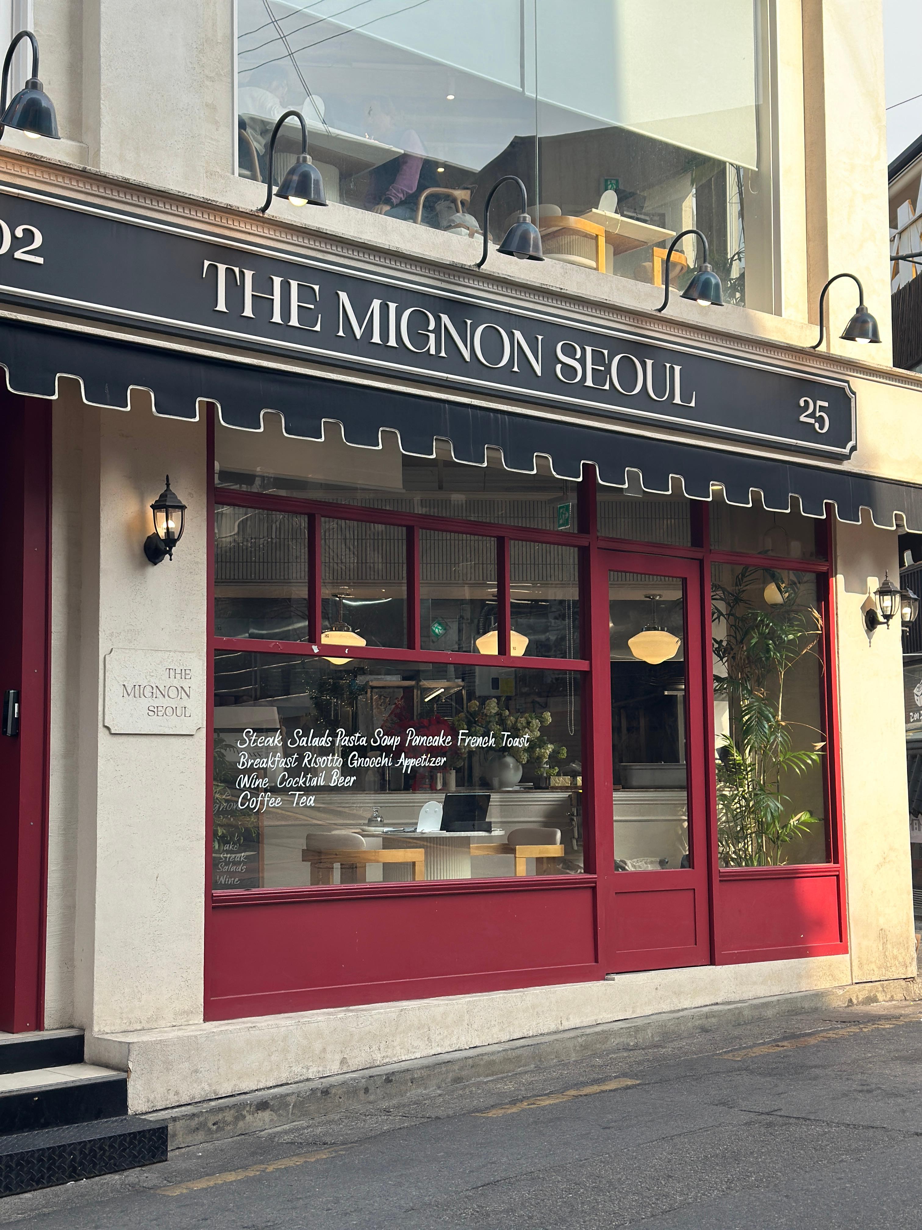 강남역과 역삼역 사이, 복잡한 도심 속에서 유럽의 작은 식당에 온 듯한 느낌을 주는 곳이 바로 더미뇽입니다. 왜 이곳이 소개팅 장소로 유명한지 입구에 들어서자마자 알 수 있었어요. 밖에서 사진을 찍어보니 유럽의 한 레스토랑 앞에 온 듯한 느낌이기도 했습니다.