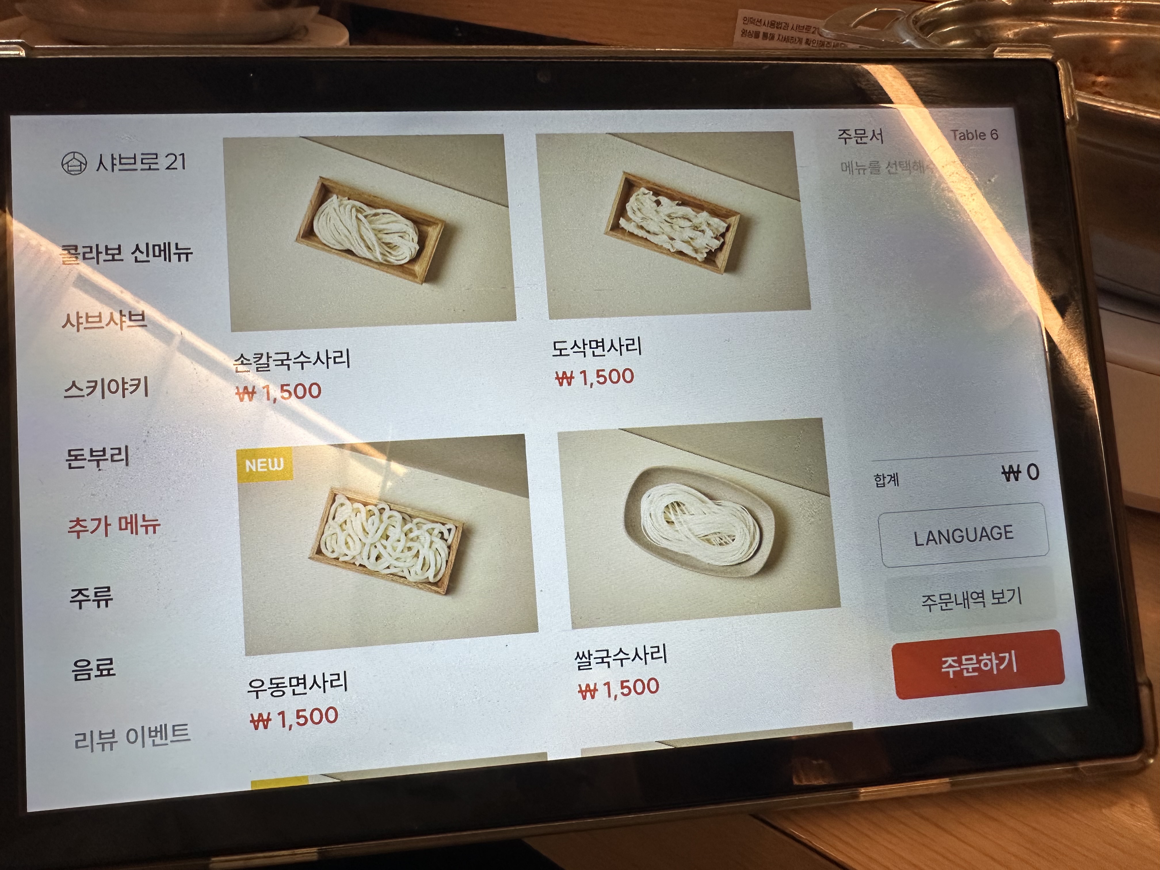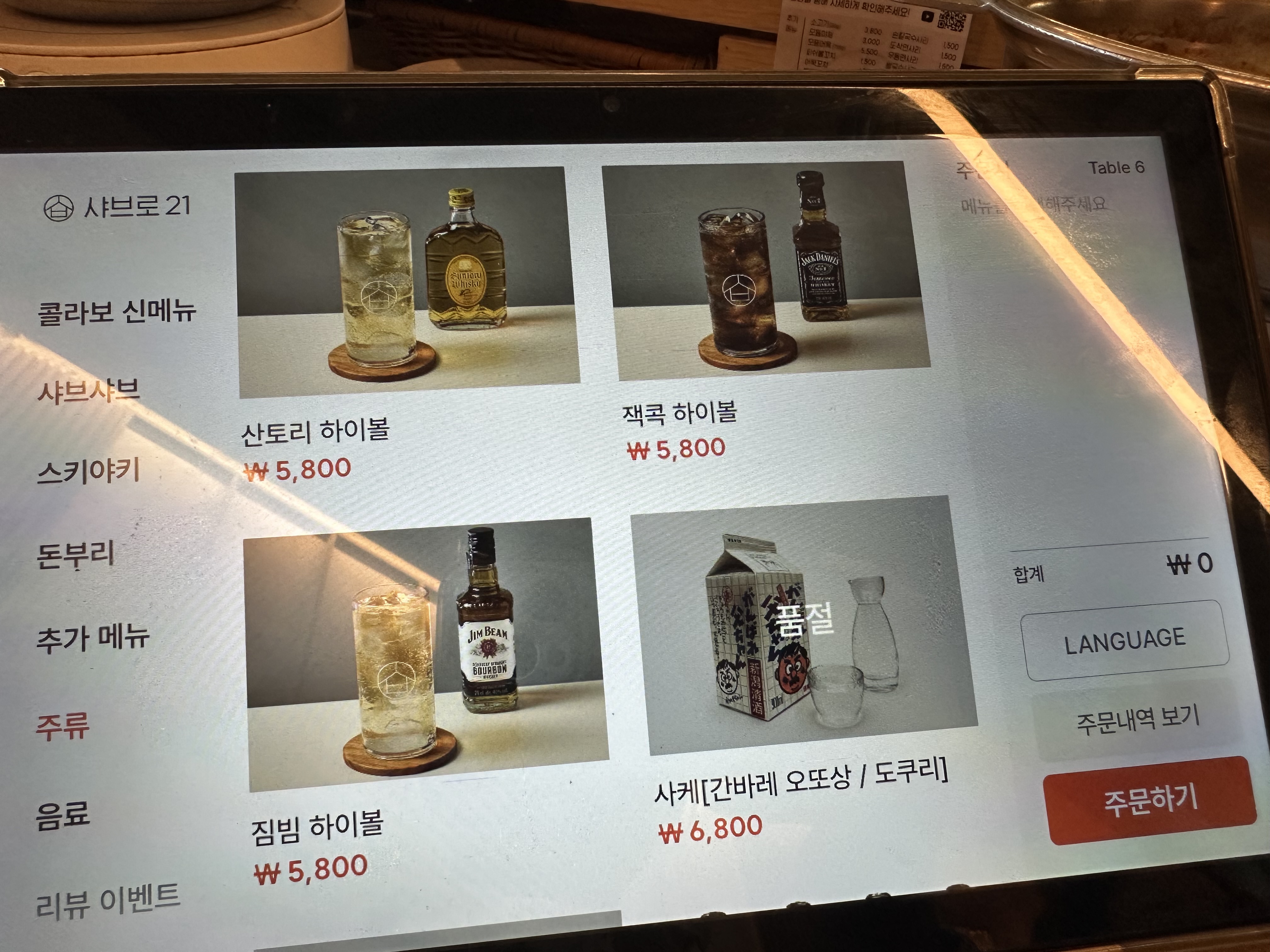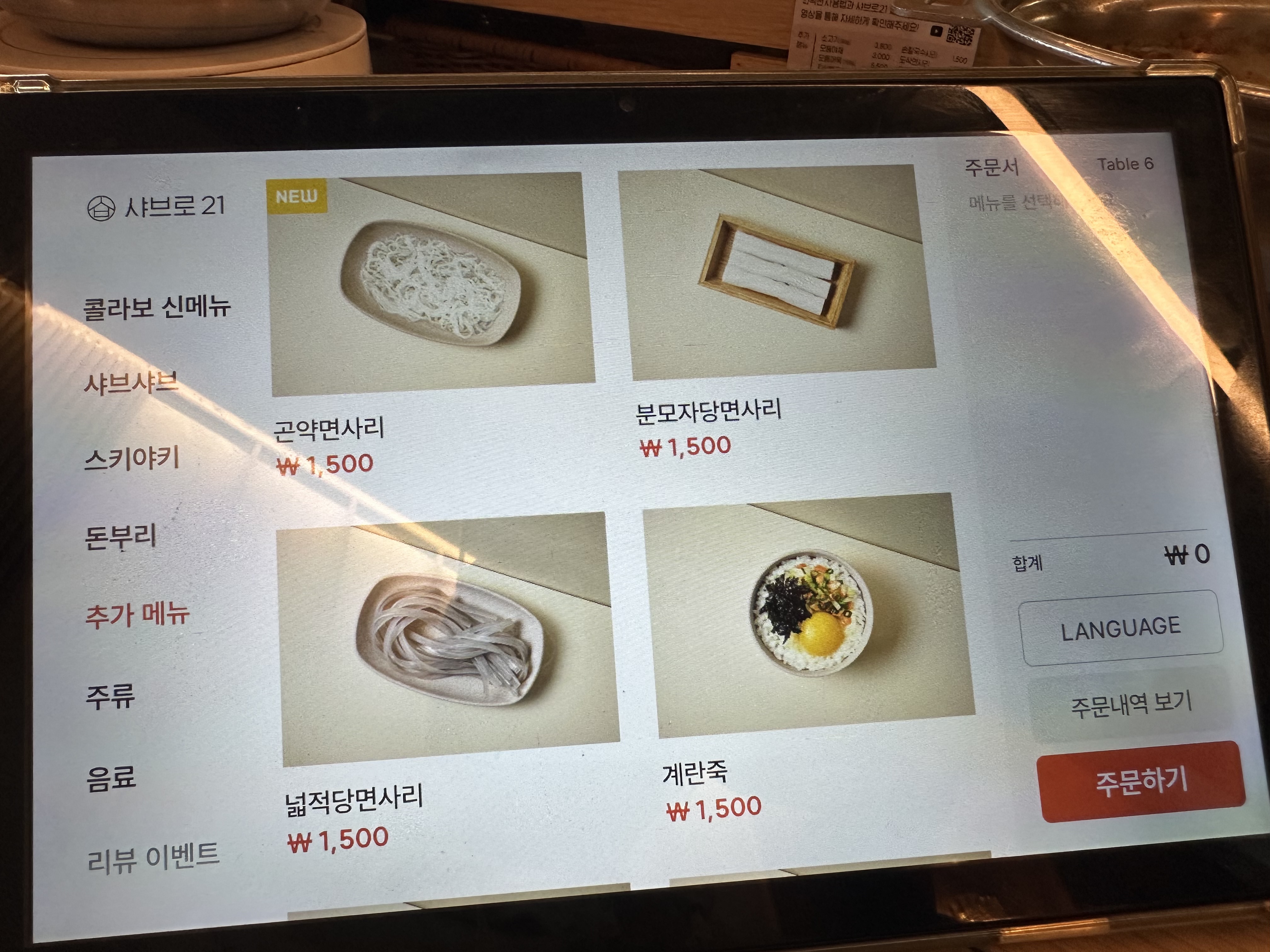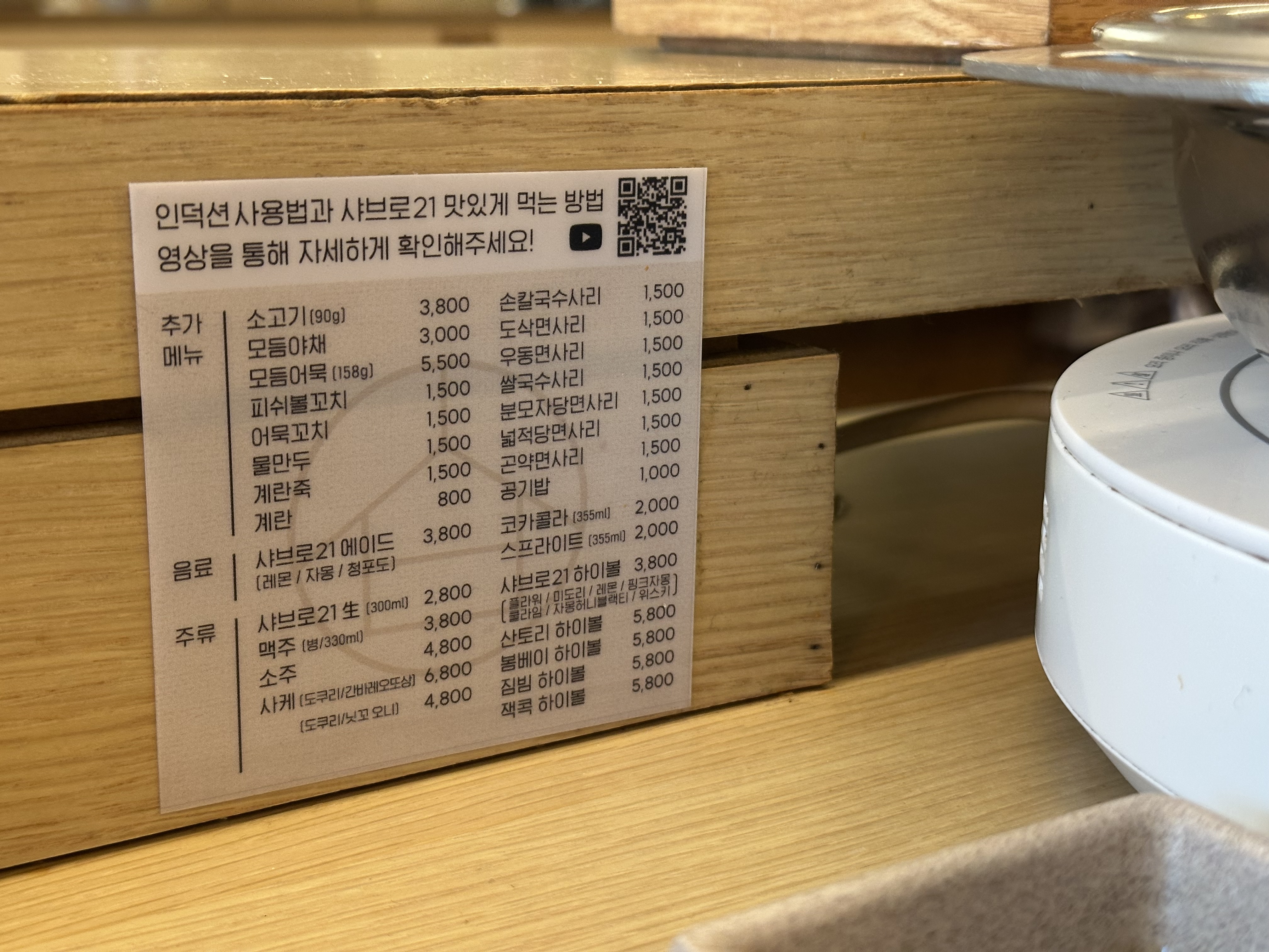 메뉴판 (지금은 휴대폰으로 주문하는 시스템으로 바뀌었다.)