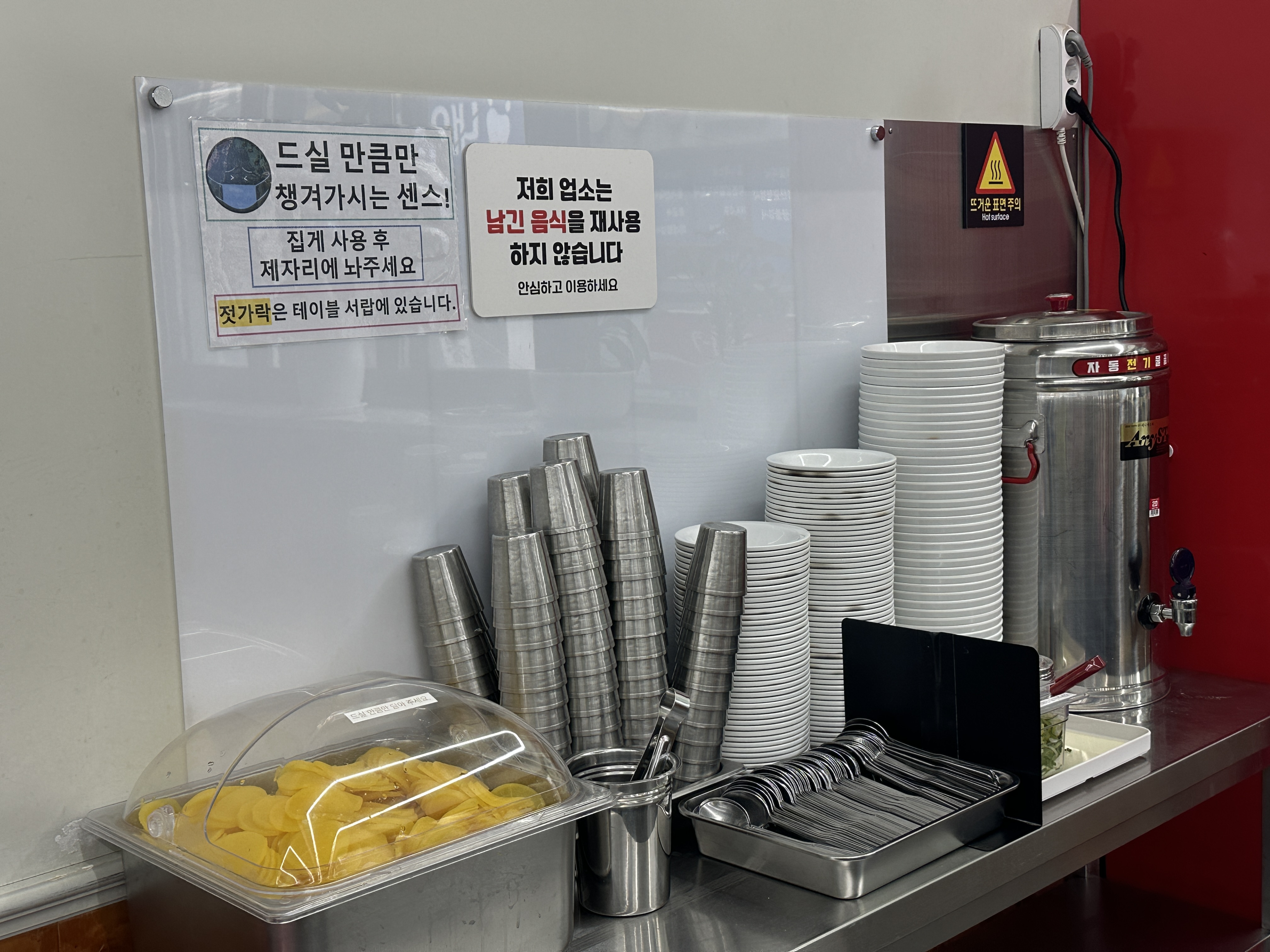 - 유의사항: 모든 것이 '셀프' 시스템. 물, 단무지, 국물 등 직접 챙겨야 하며, 주문은 키오스크로 진행.