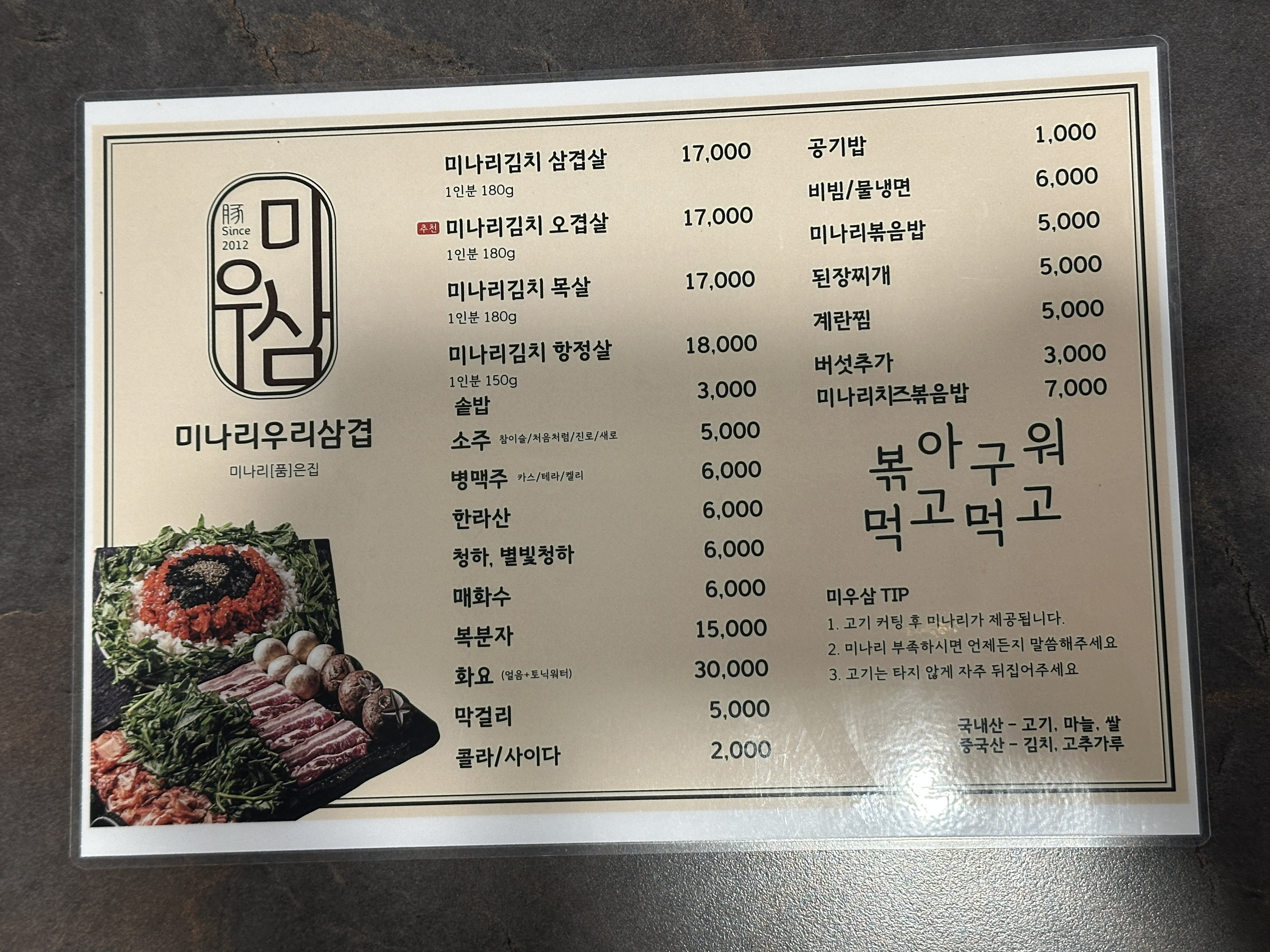 - 상호명 : 미나리우리삼겹 (마포직영점)