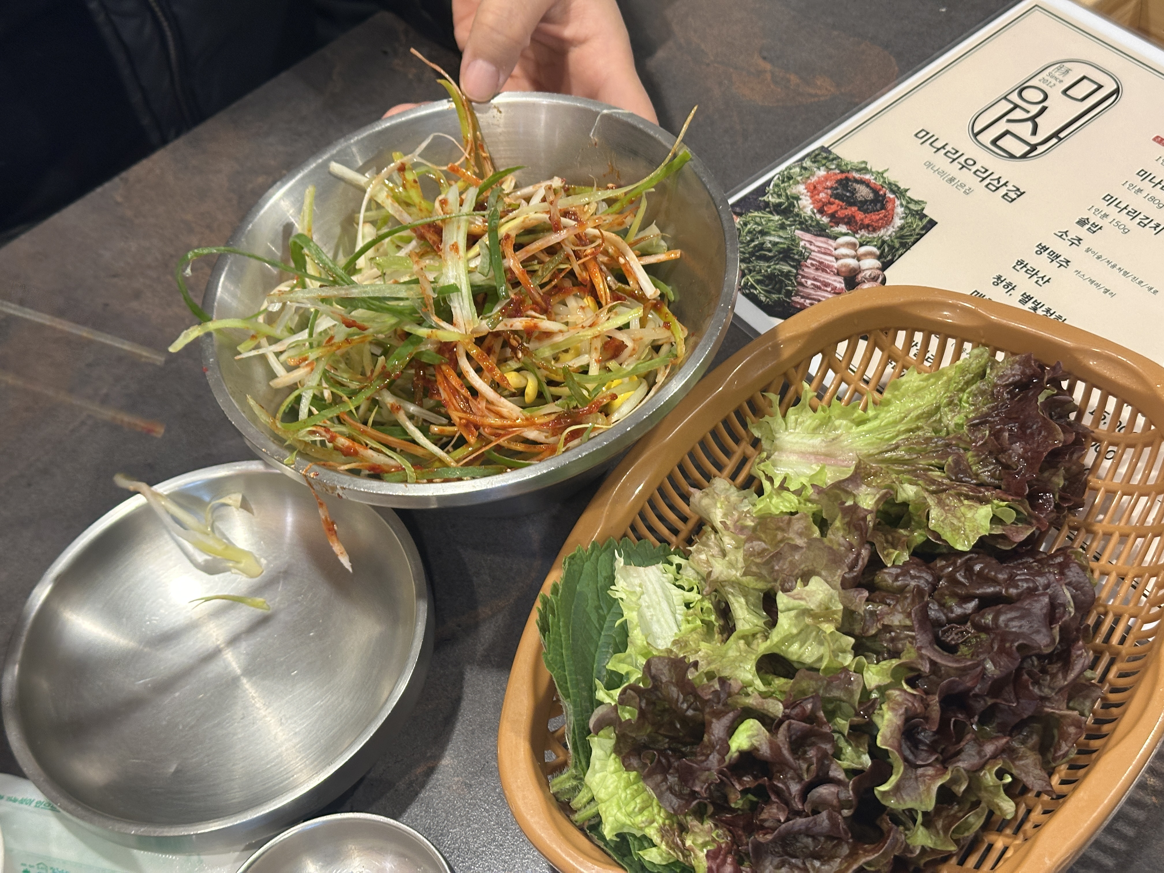 - 특히 좋았던 점: 신선한 미나리를 아낌없이 제공하며, 삼겹살의 기름진 맛을 미나리의 향긋함이 완벽하게 잡아준다. 직원이 고기를 직접 알맞게 구워주어 편하게 식사할 수 있으며, 고기 기름에 함께 구워진 미나리의 식감이 일품이다.